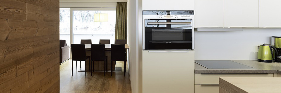 - hochwertige Küche mit Topaustattung (Mikrowelle, Backrohr, Ceranfeld, Kühlschrank mit Tiefkühlfach, Geschirrspüler 60 cm, Kaffeemaschine, Wasserkocher, Toaster, Geschirr, Besteck und Töpfe)