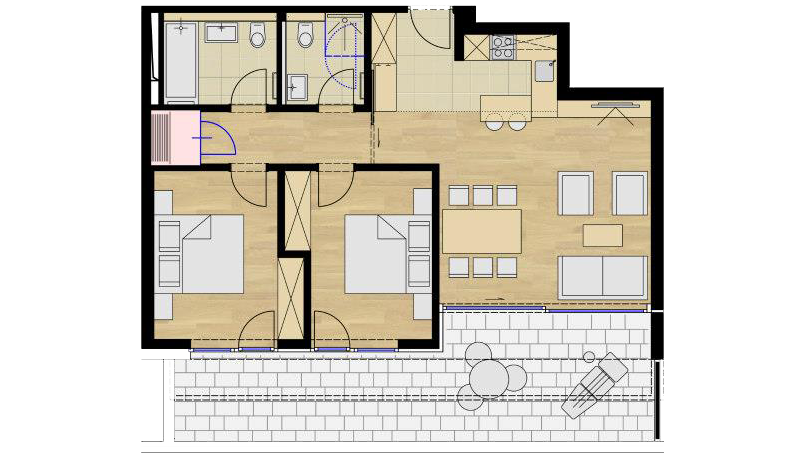 - 2 Schlafzimmer mit Doppelbett